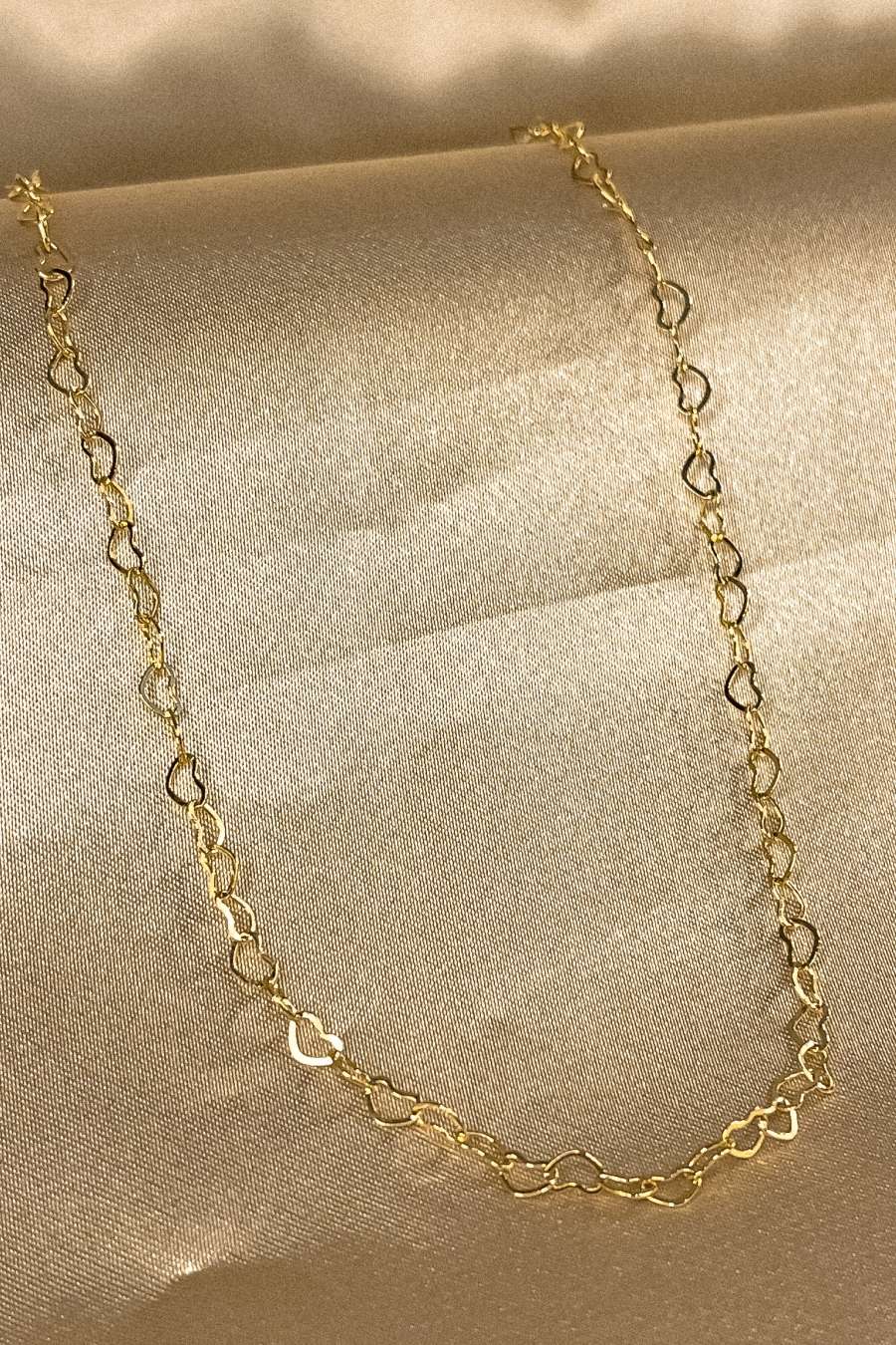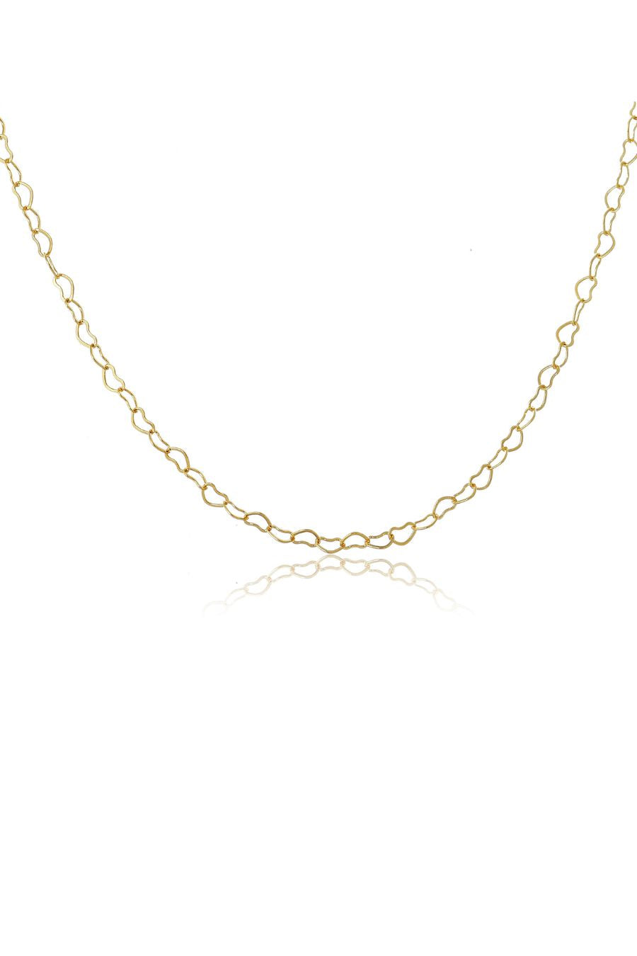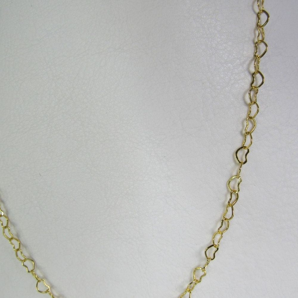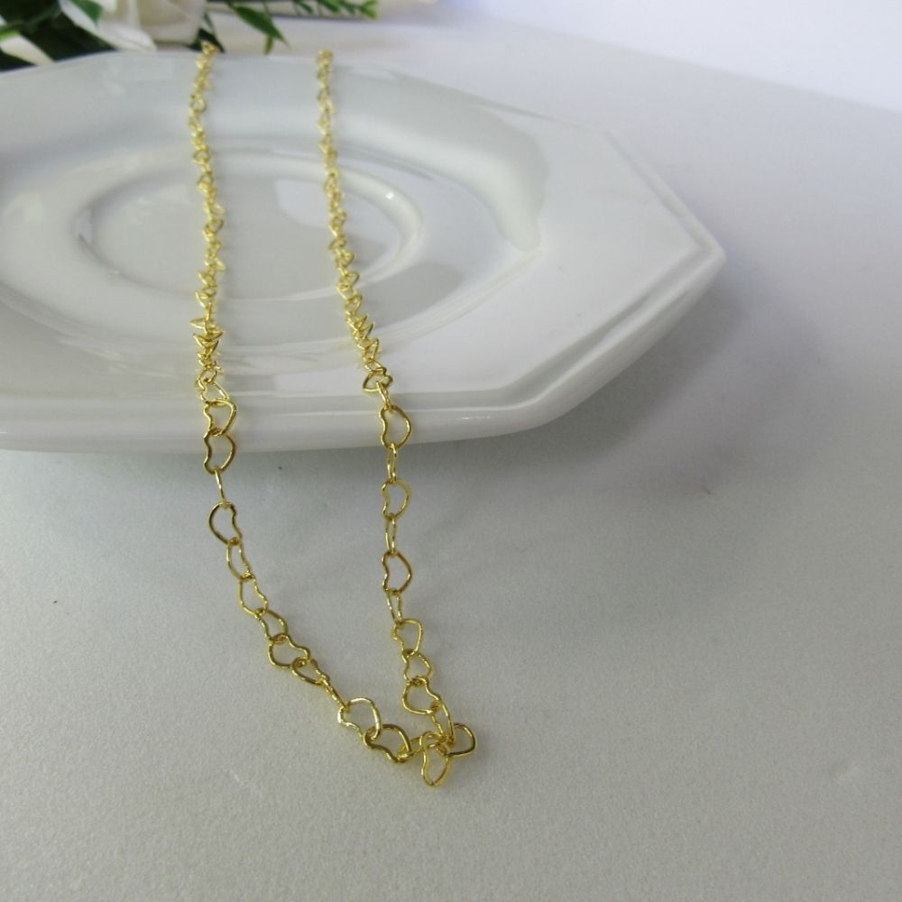 Este colar apresenta uma corrente delicada adornada com elos em forma de coração banhados em ouro 18k, oferecendo um visual romântico e feminino. O design encantador e delicado adiciona um toque de elegância ao seu visual, enquanto o banho em ouro 18k confere brilho e durabilidade à peça. Perfeito para uso diário ou para ocasiões especiais, este colar é uma escolha versátil e cheia de estilo.