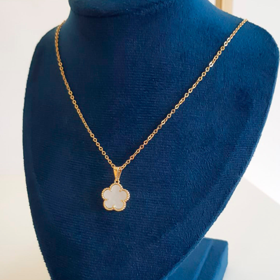 COLAR FLOR BRANCA BANHADO OURO 18K